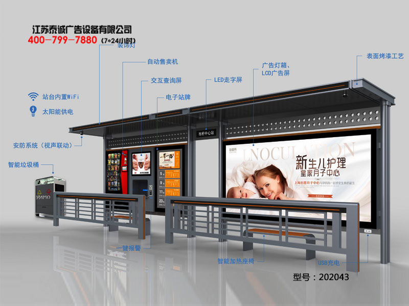 歡迎光臨江蘇泰誠設備科技有限公司 公司專業生產定做公交站臺、候車亭,宣傳欄,標識標牌等系列產品!